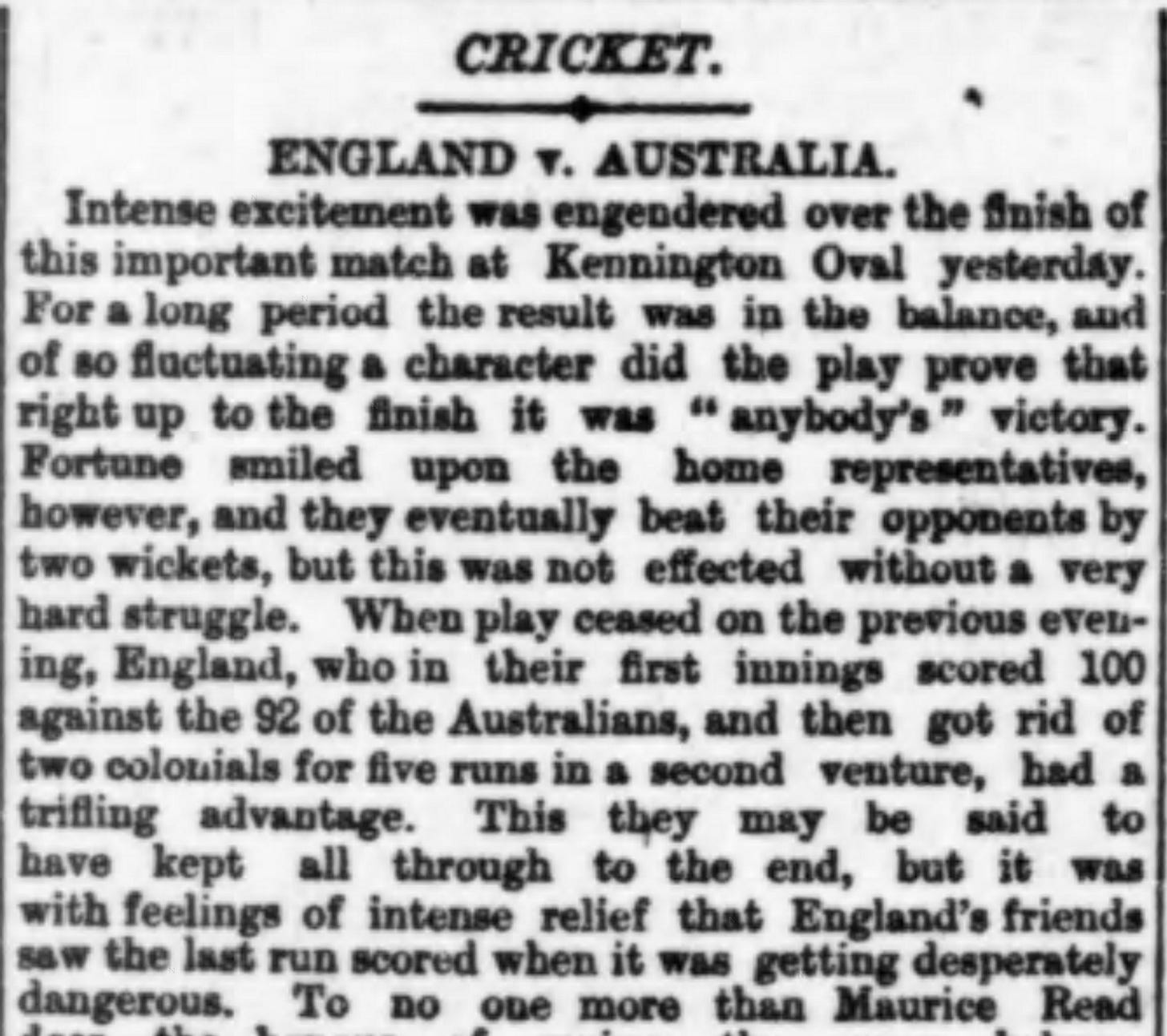 It might have escaped your attention that it is also the 135th anniversary of the Ashes of 1890!