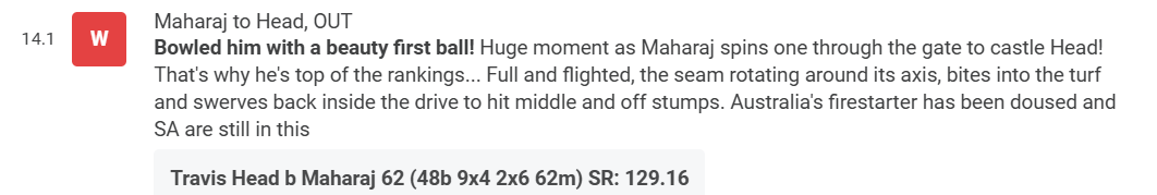 I decided to check. When Maharaj came on, Travis Head was flying - on 62 from 47 balls. Next ball: