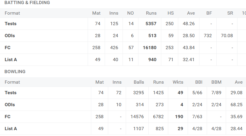 5,357 Test runs at 48.3 and 49 Test wickets at 29.1: those numbers stack up well against almost anyone. Imagine Nathan Lyon, except with a slightly better bowling average … and a batting ability on par with Michael Clarke!