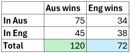 But it does skew the record a bit - as does the fact that many of Australia’s Ashes series wins have been thrashings but a lot of England’s wins have been narrow.