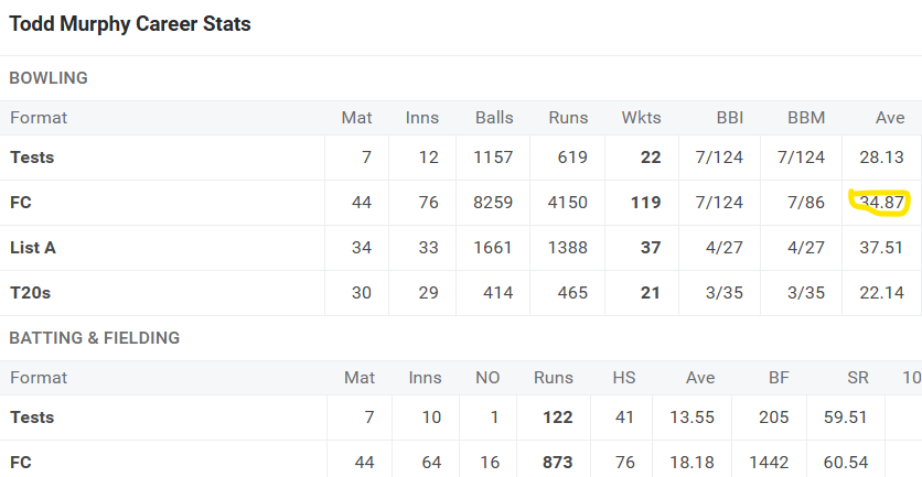 I’m not so convinced about Murphy. I’m happy for him to be in the mix for games in the subcontinent but with an overall first class average of 34.9 I don’t think he’s the best option in Australia.
